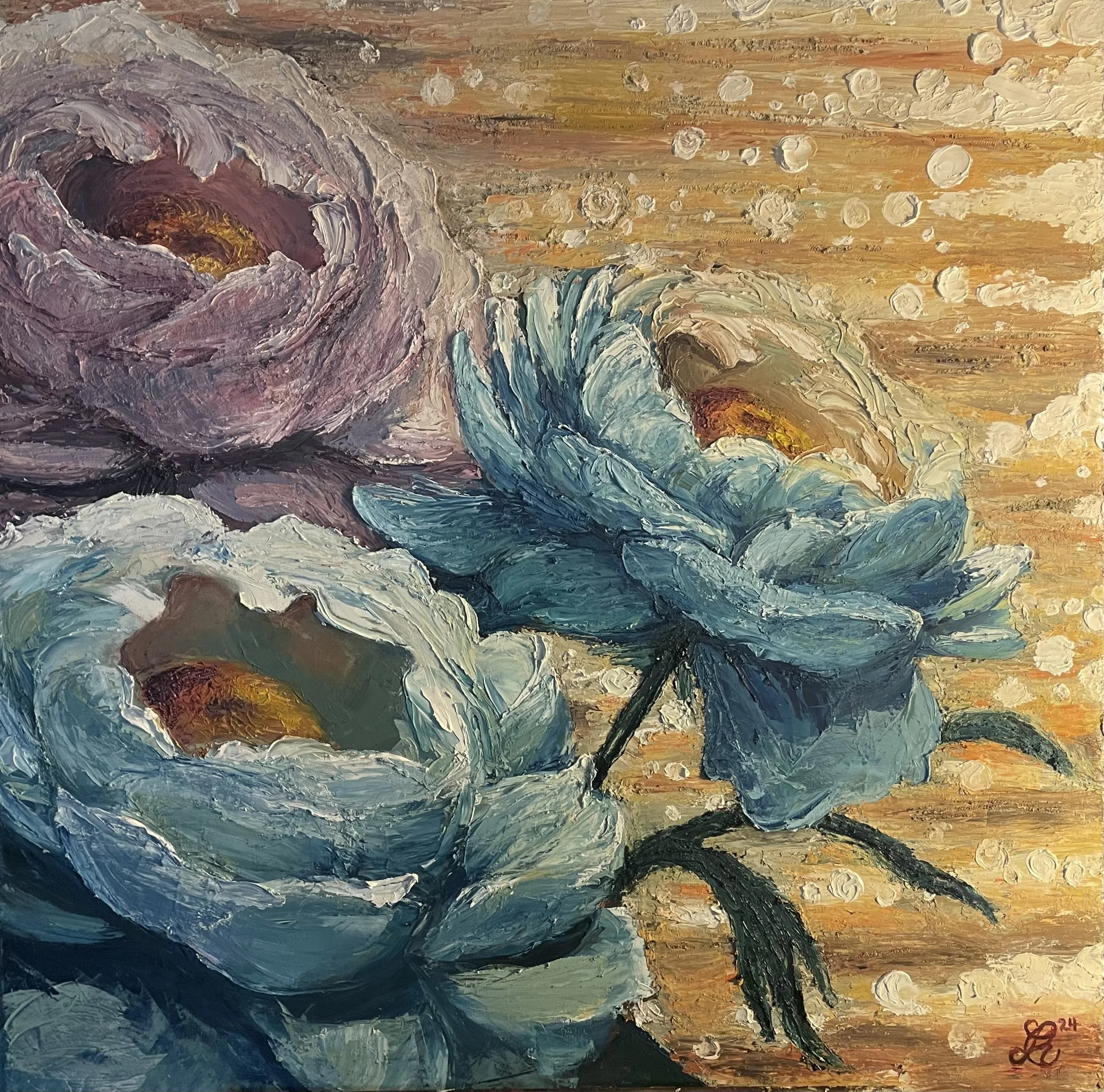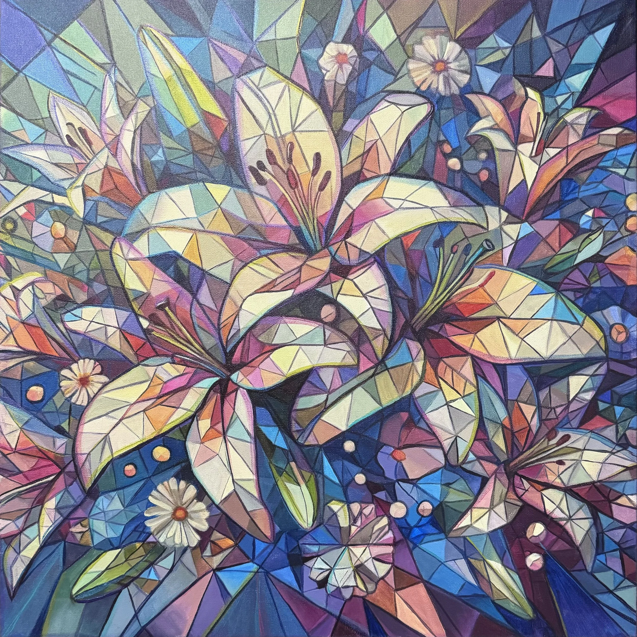 Untitled The Freest of Lilies "C's Peonies", oil & coldwax on canvas, 36 x 36 inches, 2023 Path of Enlightenment Lincoln Memorial Pearly Whites Lost In Thought Hidden Peacock